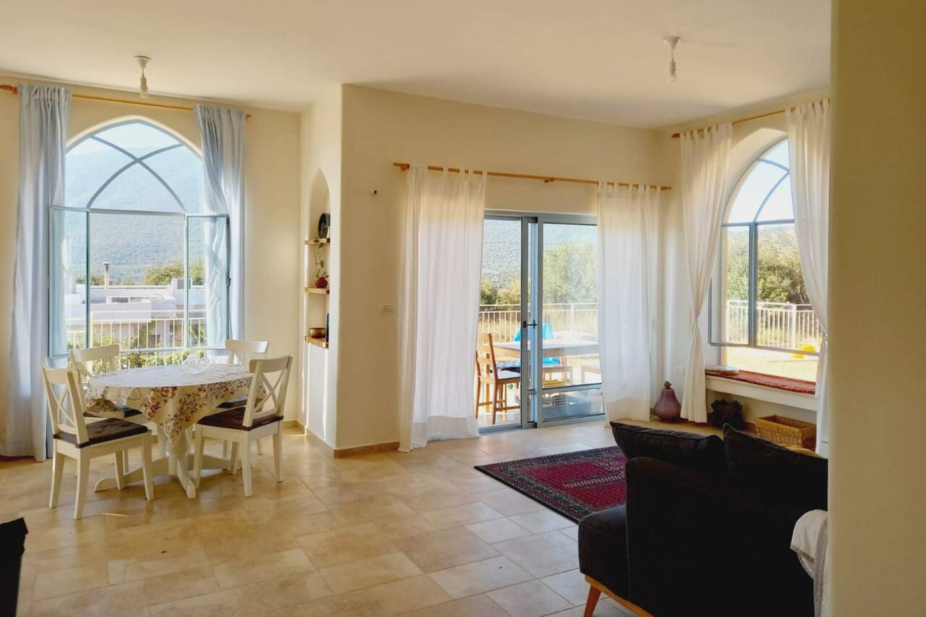 הבית נבנה בסגנון אירופאי ייחודי, שיוצר אווירה של בית מלון או בית נופש משפחתי. החדרים מרווחים עם הרבה אור, ולכל חדר יש יציאה נפרדת לגינה המושקעת עם הנוף להר מירון. בחוץ מחכות לכם גם 2 פרגולות גדולות שפונות דרומה, מה שמסביר את האור היפה שנכנס לתוך הבית.